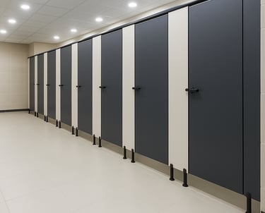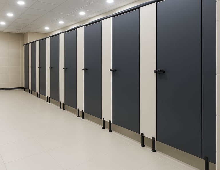 Strong, hygienic cubicles built with durable materials, ensuring privacy and easy maintenance.