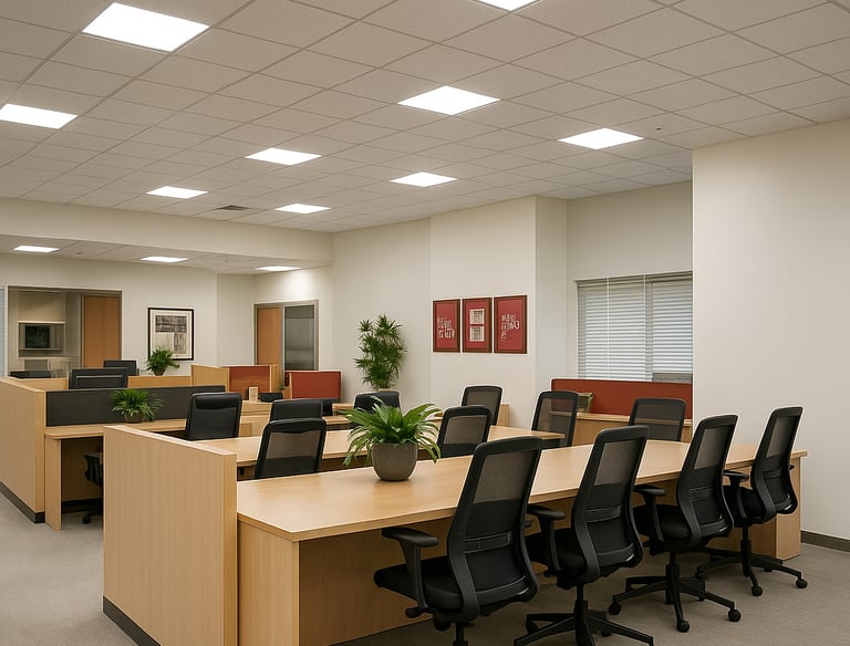 We provide complete end-to-end solutions for offices, showrooms, and workspaces. From flooring and furniture to partitions, panelling, and restroom cubicles—everything is delivered under one roof, on time, with premium quality and hassle-free execution.